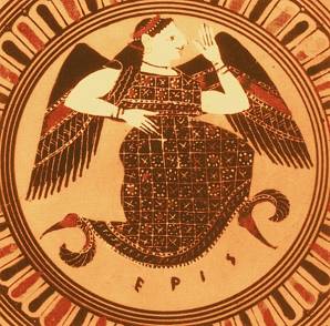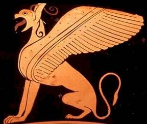 Figura 13: Uma Esfinge, análoga a uma Hárpia, «devoradora» de jovens guerreiros para poder ser «transportadora das (suas) almas», ou metáfora dos «mortos em combate»!