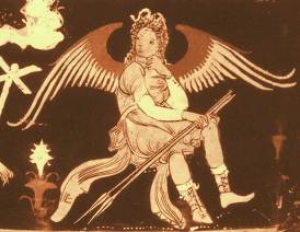 O cortejo dos deuses infernais alados é também muito maior do que o grego que se limitava a Tánatos & Hipnos.