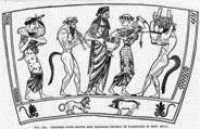 Logo aqui o autor, Henry Beauchamp Walters, refere que esta cena de “Dionísio entre sátiros e ménades” aparece numa Hidria de Panfaios que ele bem conheceria por estar à sua guarda enquanto conservador assistente da secção de antiguidades greco-romanas do Museu Britânico em finais do século XIX e início do século XX. Actualmente os curadores deste museu devem estar com problemas financeiros devidos à crise global porque no seu site,